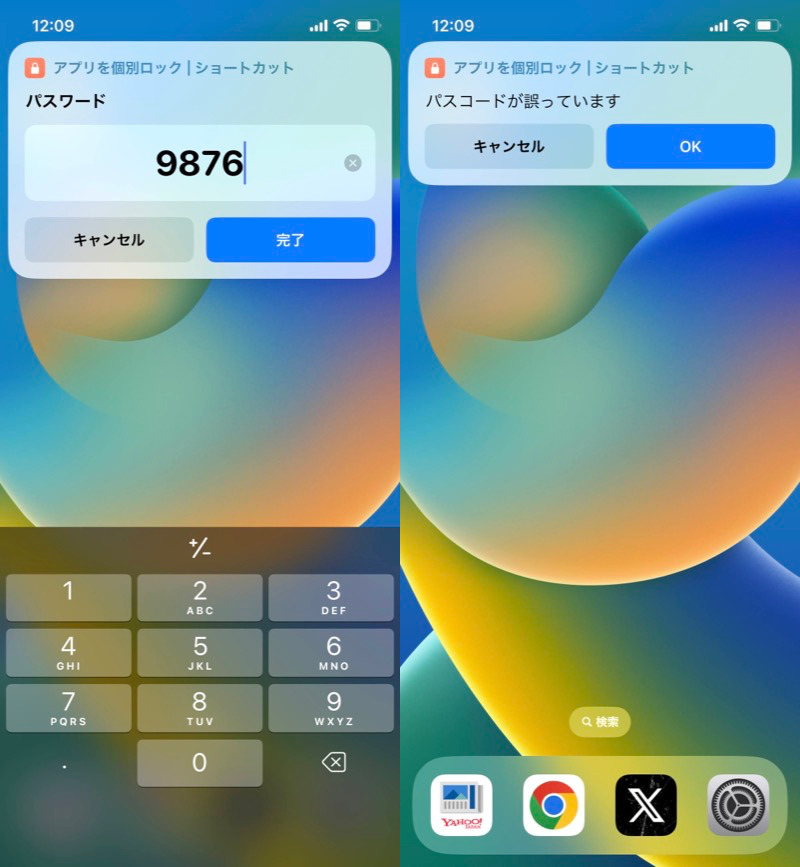 如果输入正确的密码(左),则可以打开该应用程序(右)。