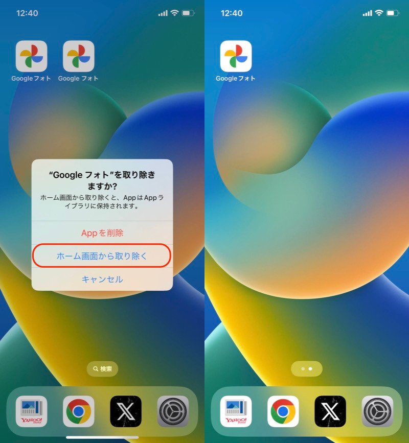 (左)从主屏幕中删除(右)仅显示带密码的图标
