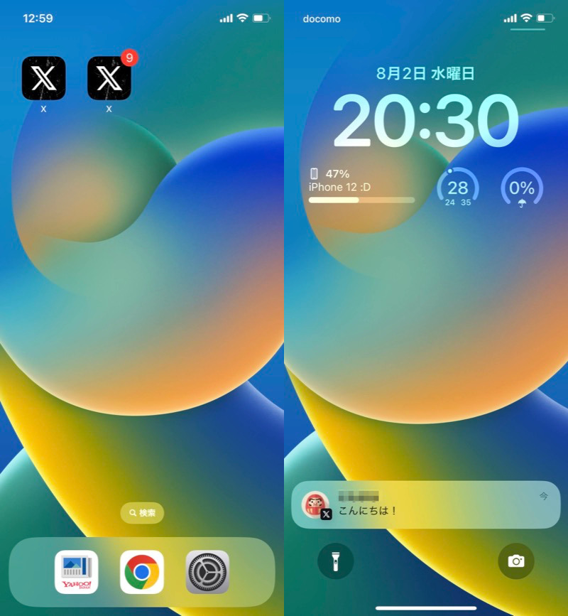 (左)添加 X 图标后未显示通知数量(右)通知中心中显示的示例