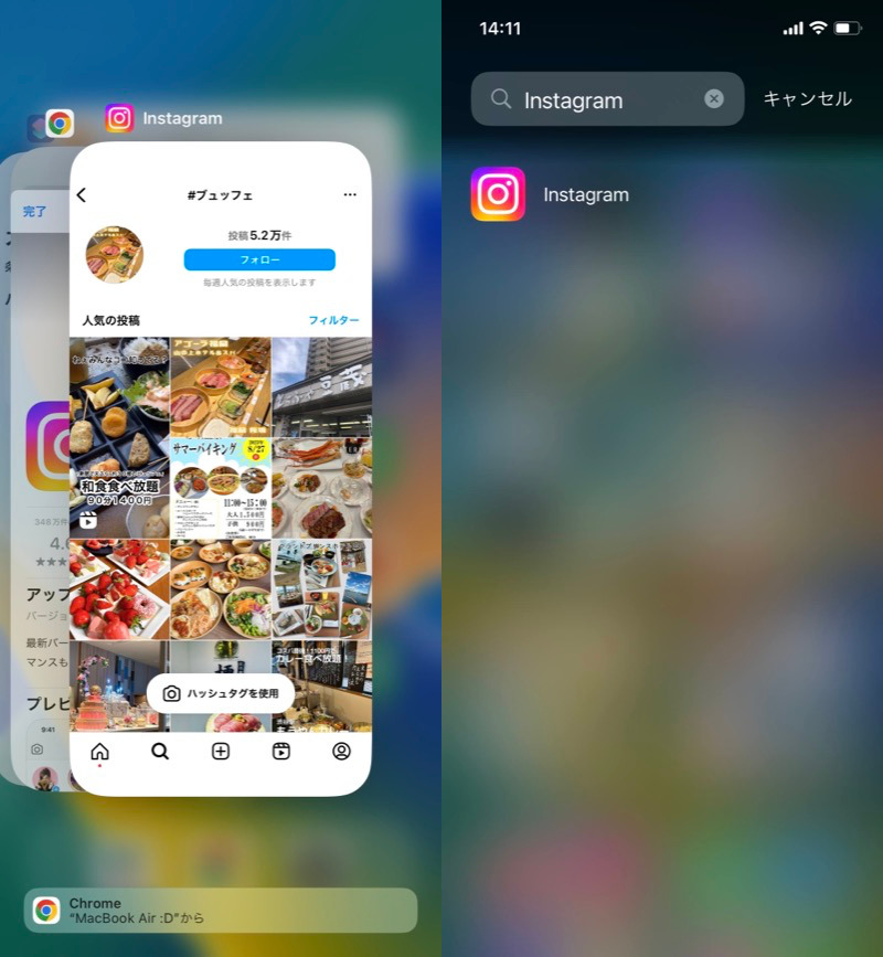 当您打开 Instagram(左)时,会出现锁定屏幕(右)。