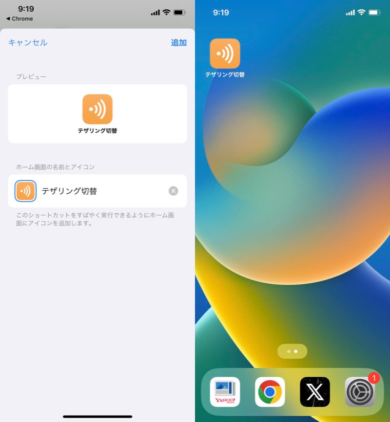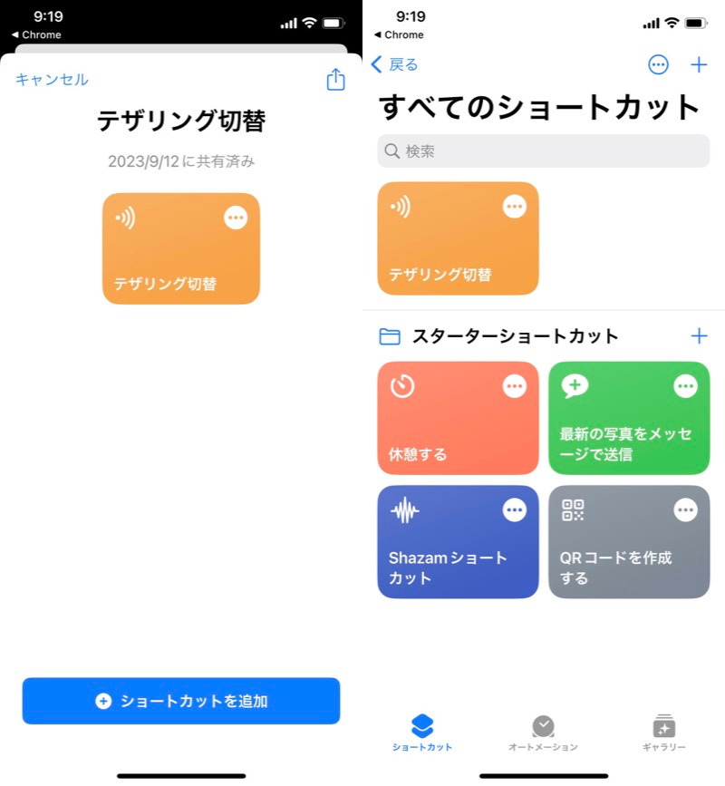 这个链接请从这里获取预先创建的快捷方式“Tethering Switch”。