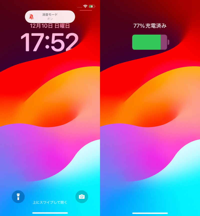 设置为静音模式时(左),充电开始声音不会响起(右)。