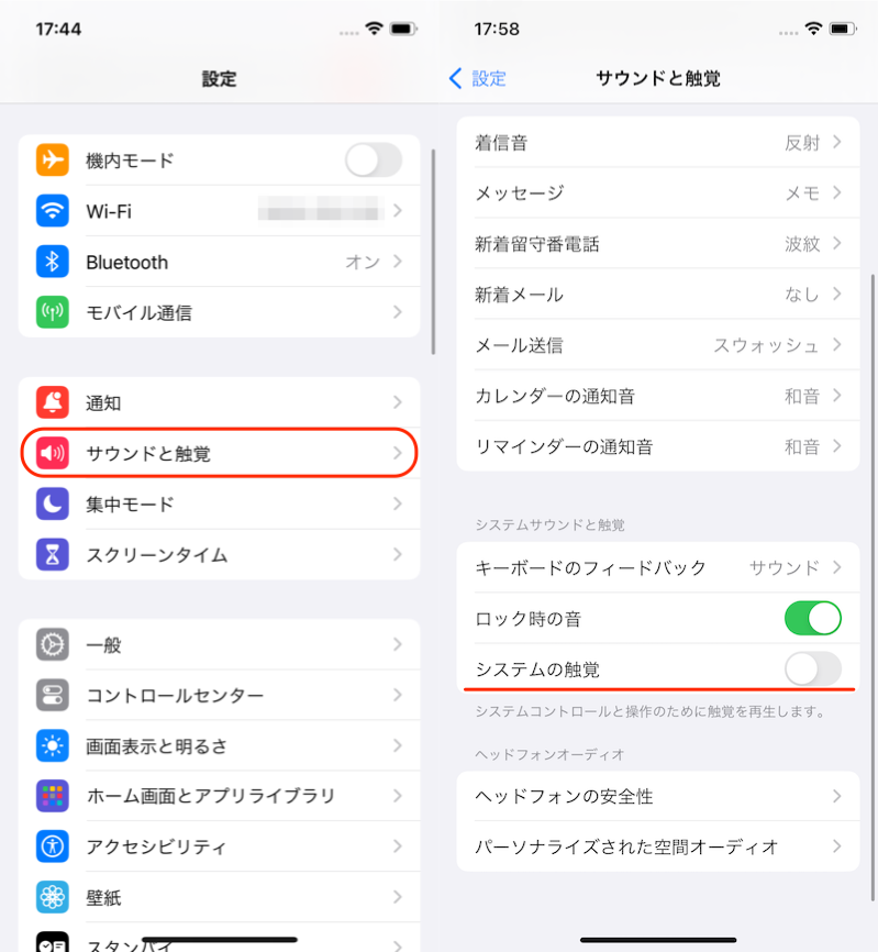 (左)声音和触觉(右)禁用系统触觉