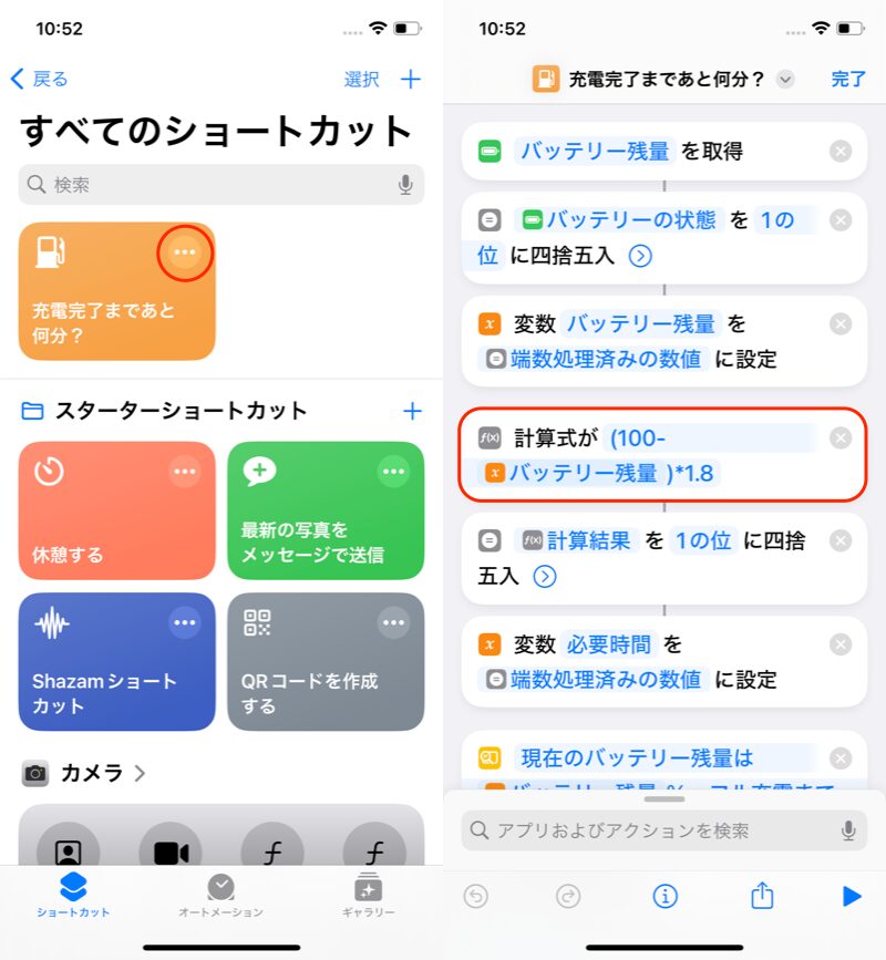 您可以通过打开快捷方式“充电完成需要多少分钟?”的编辑菜单来了解其工作原理。