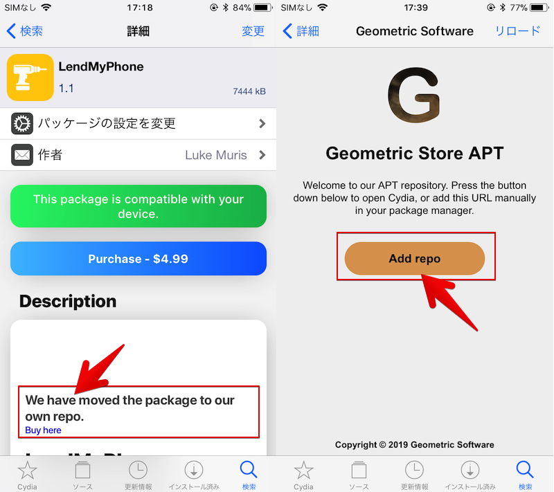 首先,“LendMyPhone”页面的“描述”中将显示以下消息,因此请转到“在这里购买”→“添加存储库”,
