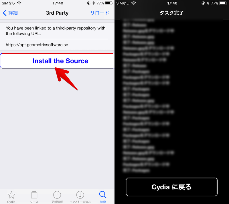 运行“安装源”将“Geometric Store”存储库添加到 Cydia。
