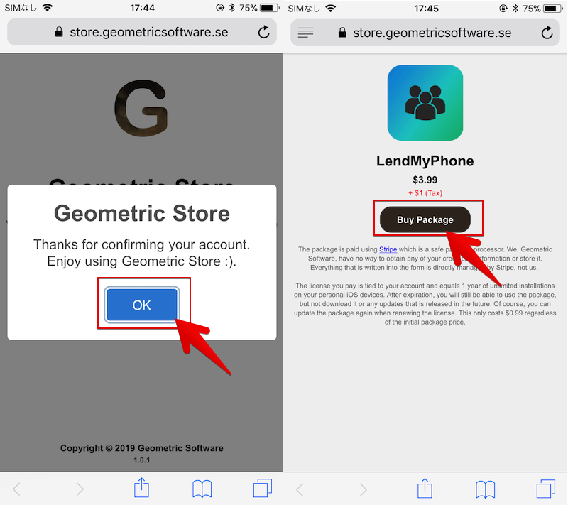 当您返回“LendMyPhone”页面时,将显示“Buy for $●●”,点击它即可打开“Geometric Store”网站。