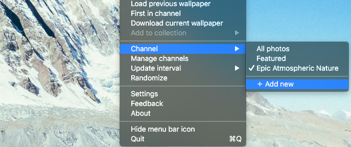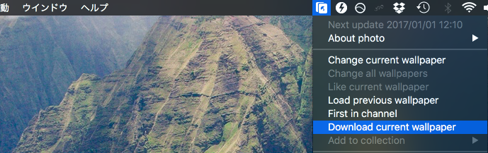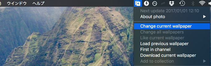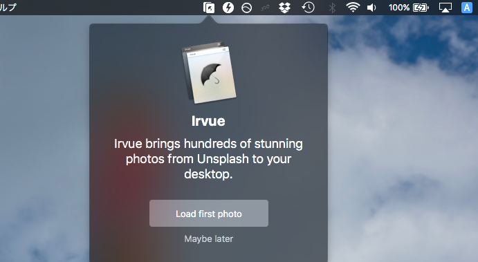 安装完成后,启动时,菜单栏上会显示一个图标,当您单击“加载第一张照片”时,会自动从上传到Unsplash的图像中设置新的壁纸。
