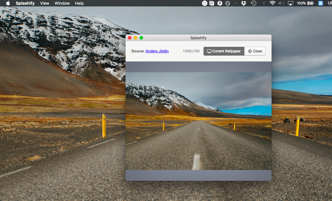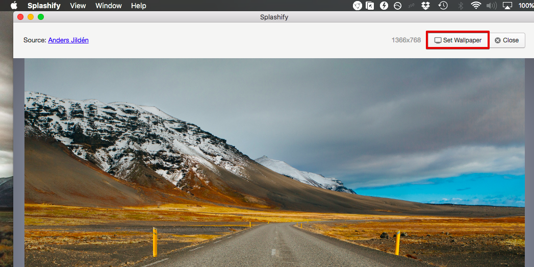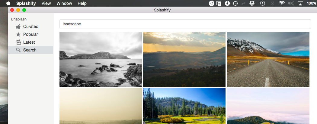 多于,Splashify – 搜索精心挑选的美丽图像列表!您可以选择壁纸并将其设置为 Mac 桌面背景。这是一个解释。