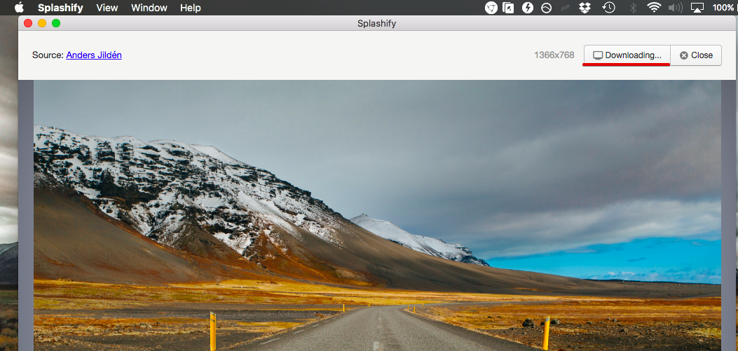 您选择设置为壁纸的图像将下载到您的 Mac 并保存在“图片”文件夹中的“Splashify”中。