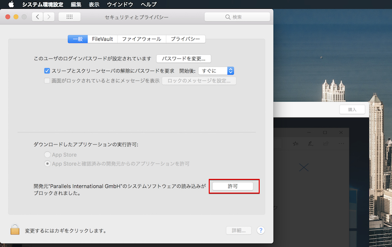 機能拡張がブロックされました ”Prallels International GmbH”によって署名された新しい機能拡張を読み込もうとしました。 これらの機能拡張を有効にしたい場合は、”セキュリティとプライバシー”システム環境設定を開いてください。
