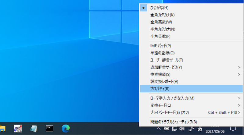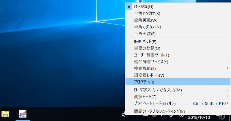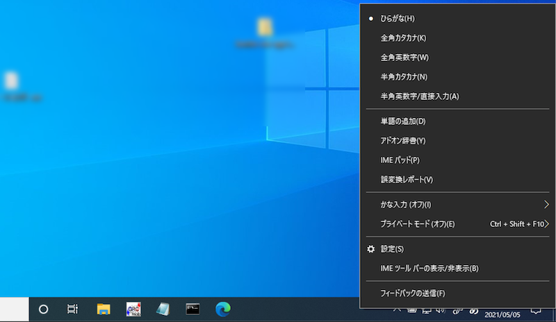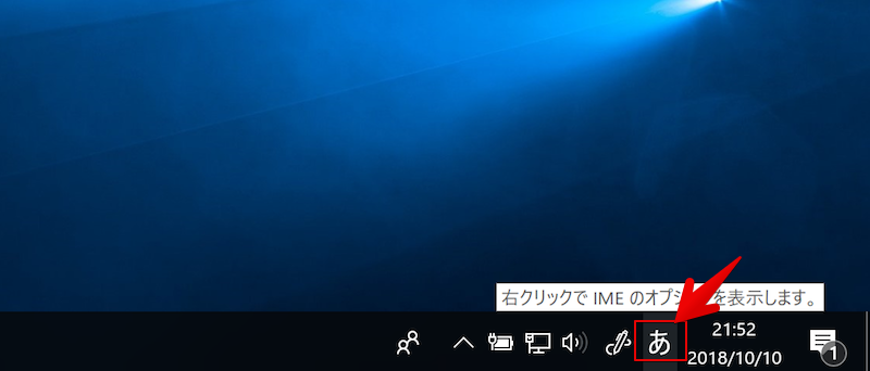 通过单击任务栏上的语言图标在“假名”和“字母数字”之间切换的示例。