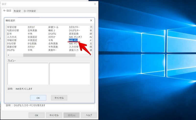 步骤 2:更改平假名 → IME:开/无转换 → IME:关