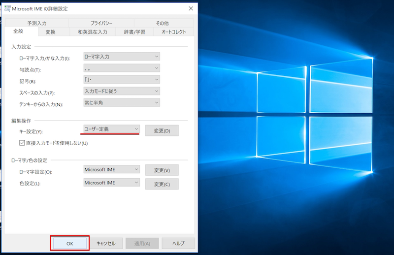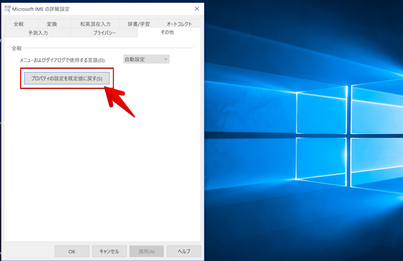 如果要将 Windows 键盘布局恢复到原始状态,请转到 Microsoft IME 高级设置。其他的在选项卡中将属性设置恢复为默认值选择。