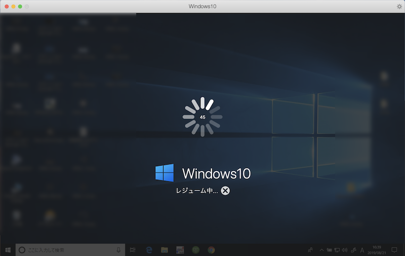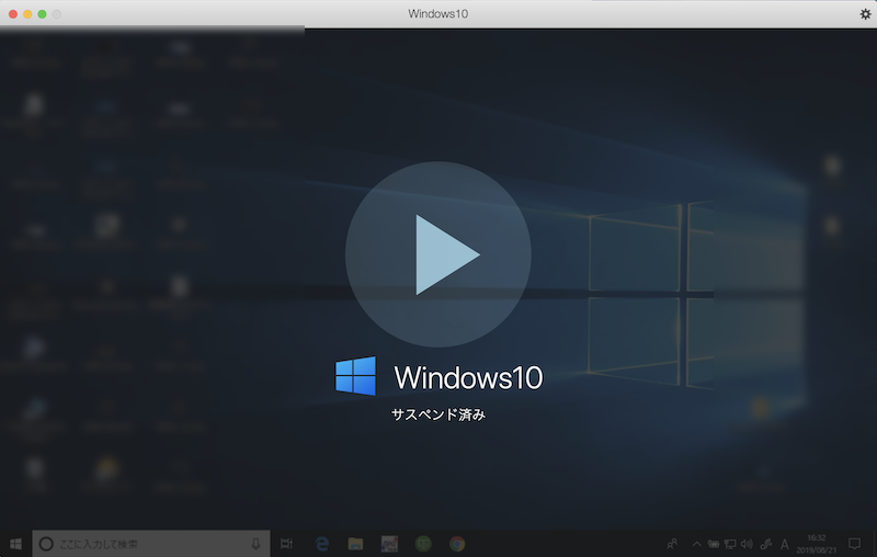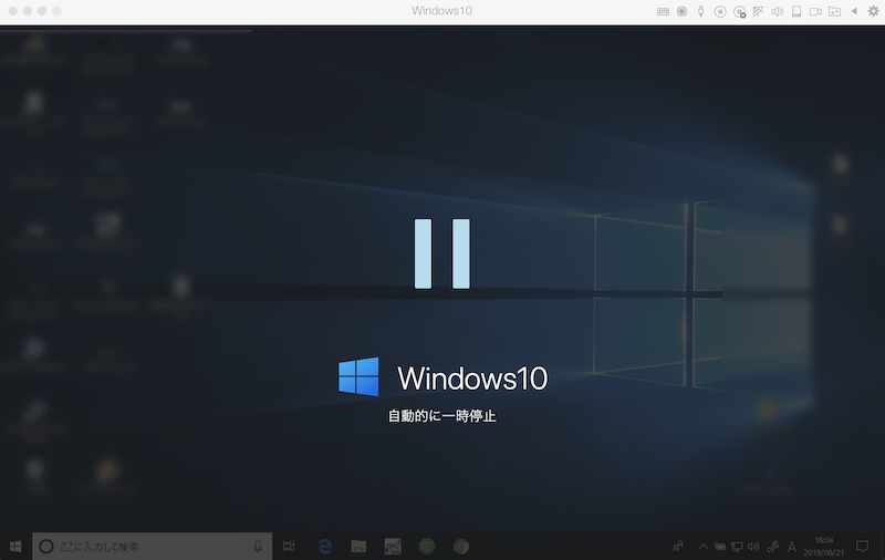 Parallels Desktop 关闭后自动挂起时的屏幕示例。