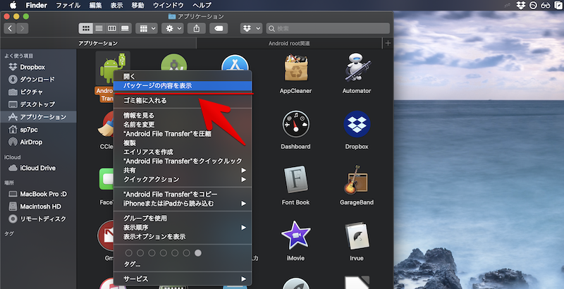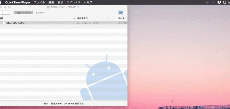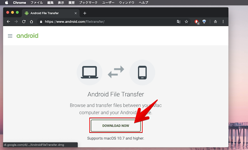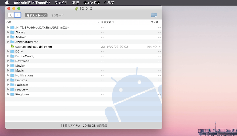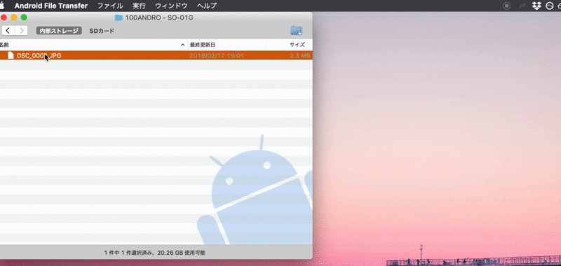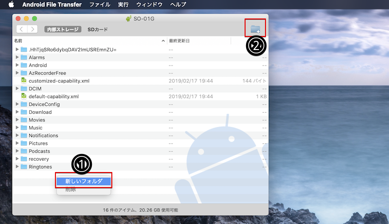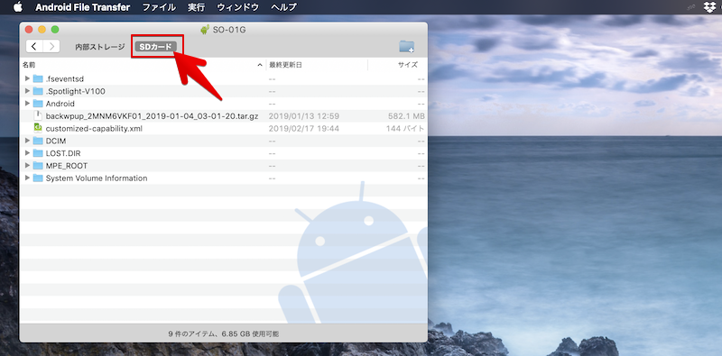 ▼Android → Mac 传输:从 Android 文件传输屏幕内部向外部传输文件