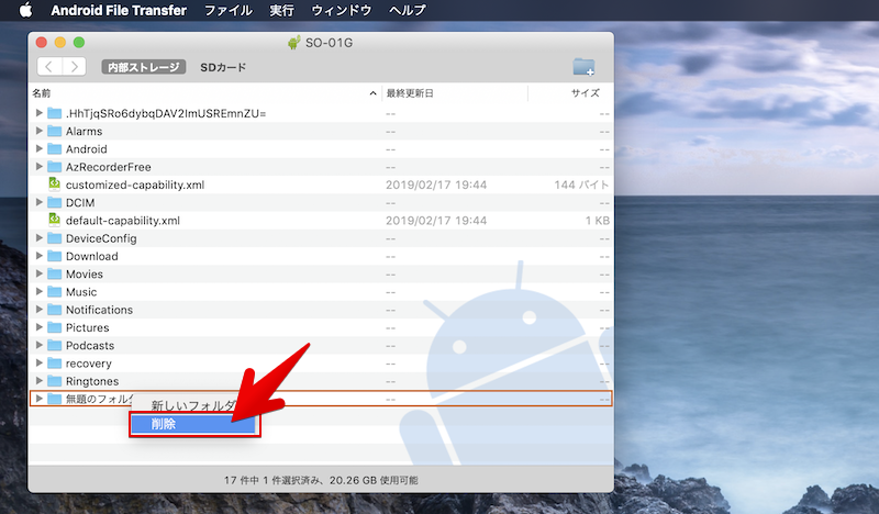 您可以操作 Android File Transfer 在 Android 上删除文件或创建新文件夹。