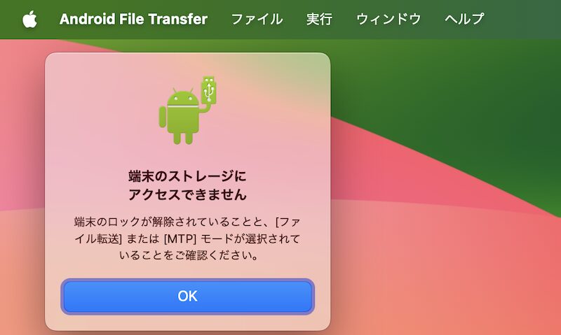 当 Mac 识别 Android 但由于某种原因无法访问设备内部时,会显示此消息。