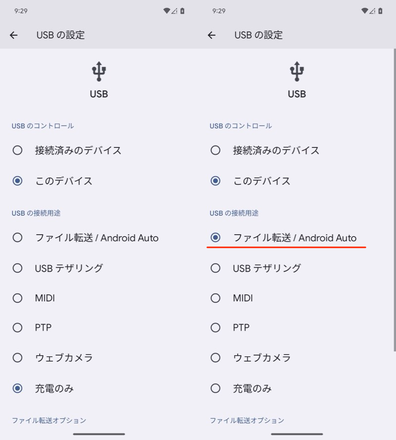 Android 端会显示一条通知,点击该通知并将 USB 连接用途切换为“文件传输”。