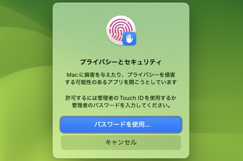 お使いのMacを保護するために"●●(アプリ名)"がブロックされました。