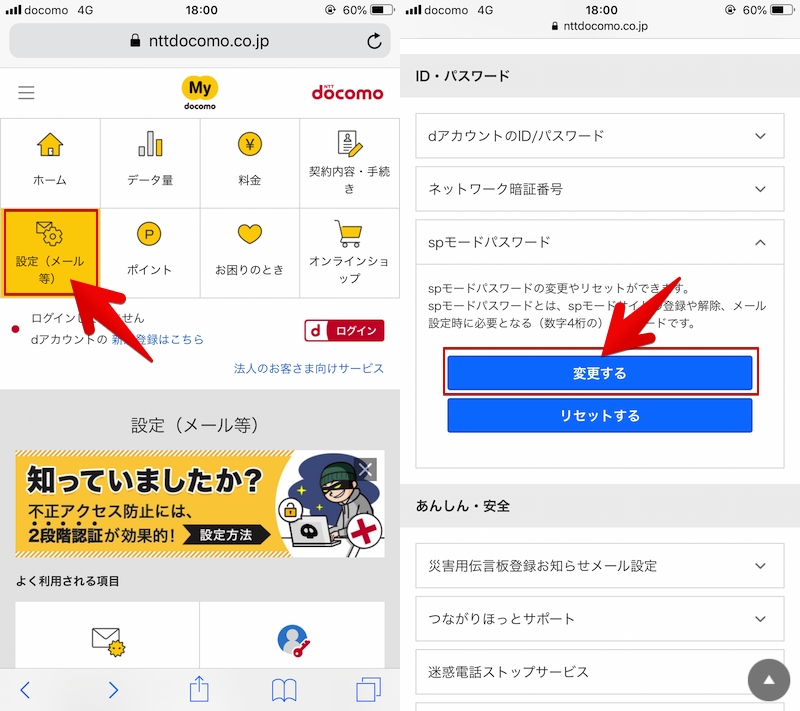 有关这两个过程的详细信息,请参阅相关文章 [如何设置docomo d账户总结!检查/更改/解锁您的 docomo ID 和密码] 进行了解释。