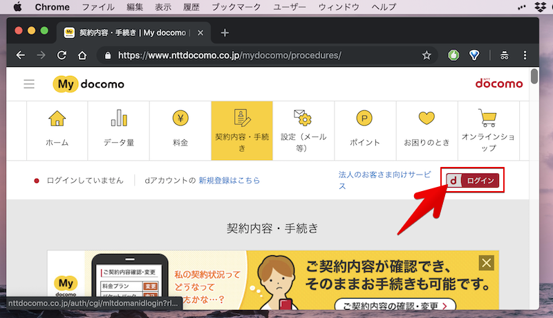在计算机浏览器中,单击我的 docomo(客户支持)”并登录您的 d 帐户。