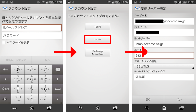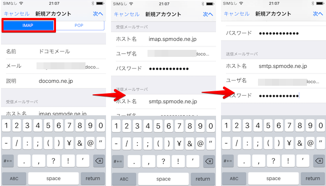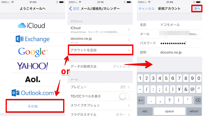 - 名称:任何您喜欢的名称(例如:docomo mail 等)