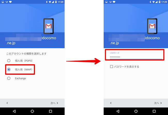 接下来,输入帐户类型“个人(IMAP)”和 d 帐户的密码。