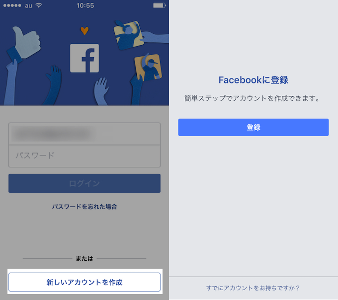 使用 Facebook 帐户注册帐户的步骤