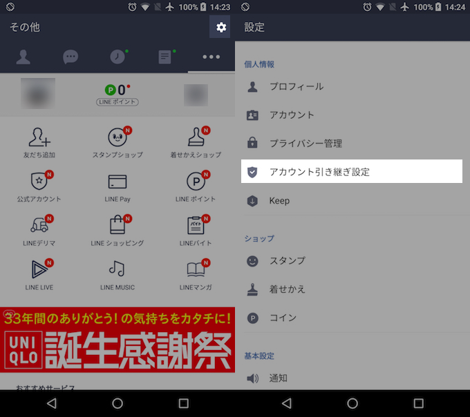当您转移帐户时,LINE数据将从您的旧设备中强制删除,因此请务必备份所有无法转移的数据。