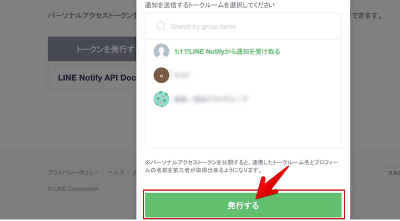 您可以为“聊天室”选择现有的群聊,但如果您只想单独接收通知,则应选择“从 LINE Notify 1:1 接收通知”。