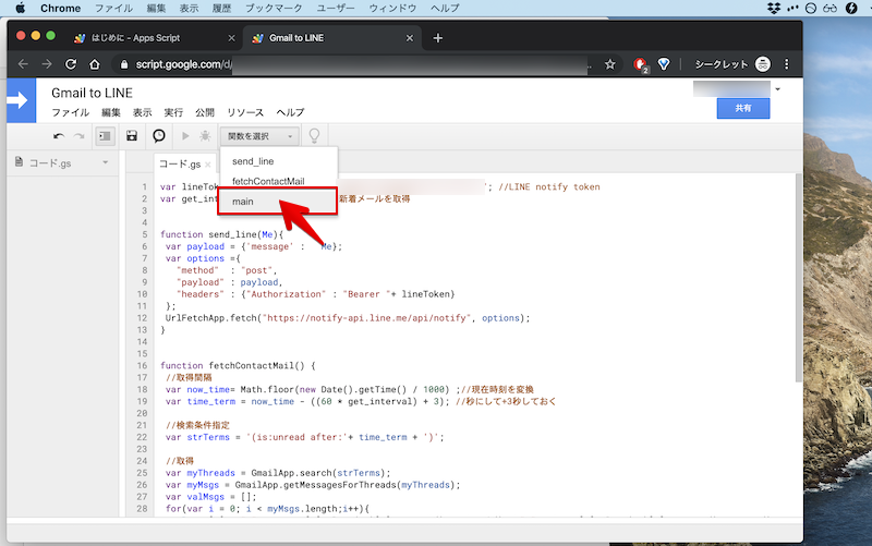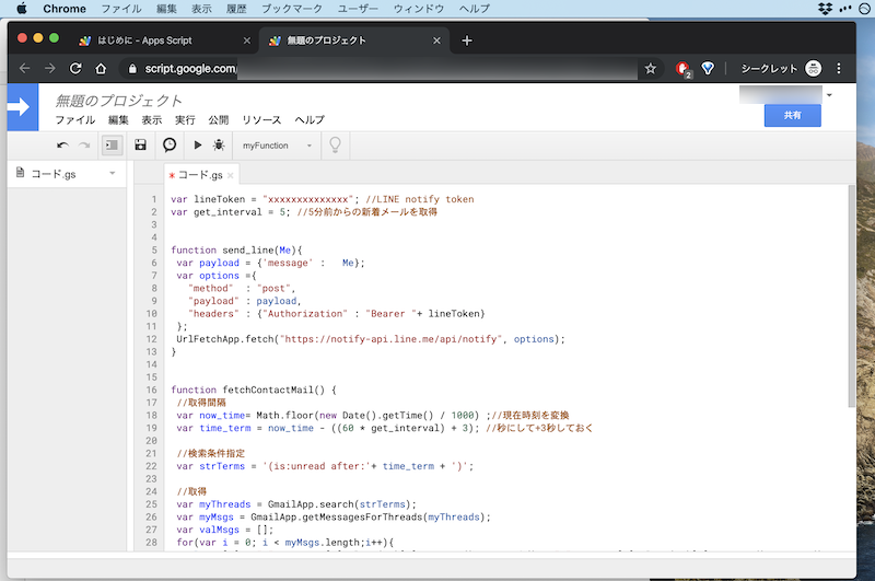 var lineToken = "xxxxxxxxxxxxxx"; //LINE notify token