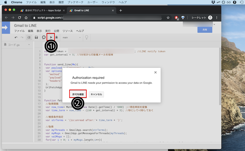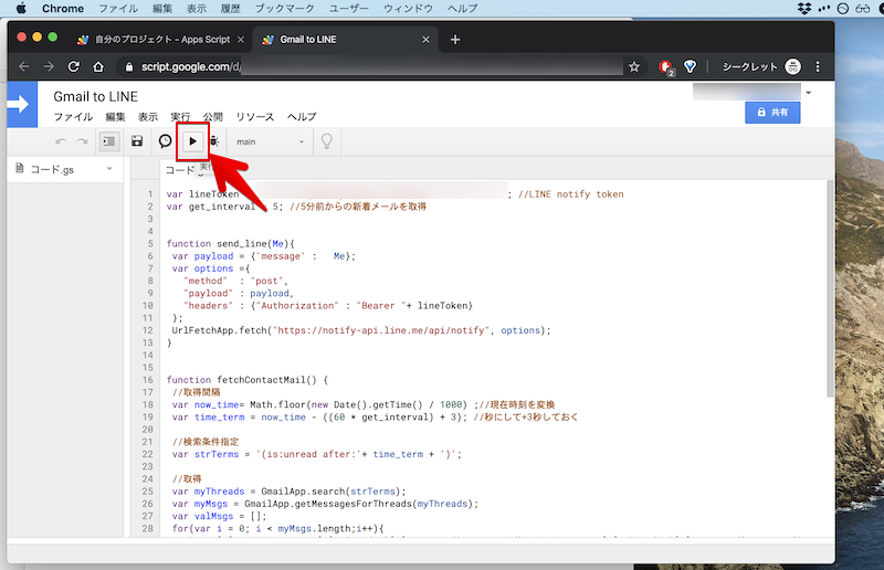 另外,不要忘记将步骤 1 中获得的 LINE Notify 令牌替换为第一行代码。