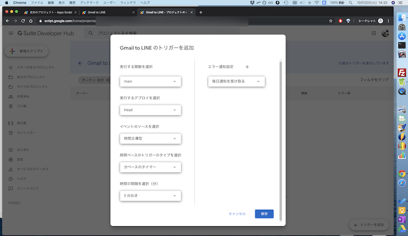 GAS(Google Apps 脚本)脚本每 5 分钟自动启动一次(= 每 5 分钟)