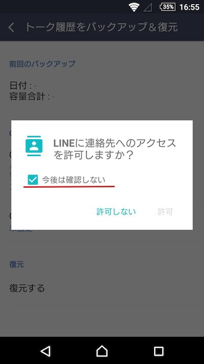 但是,要注意的一件事是,只有Android版本才需要使用Talk Histry备份功能的权限。
