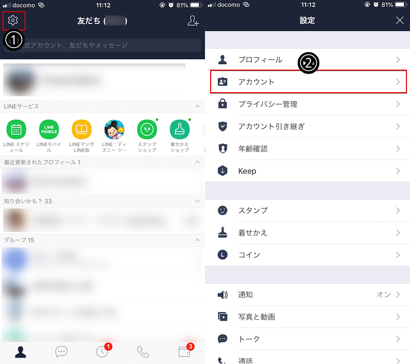 从“朋友”选项卡,转到“设置”→“帐户”。