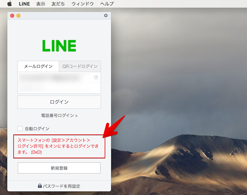 Mac 版 LINE 应用程序允许登录的屏幕示例。