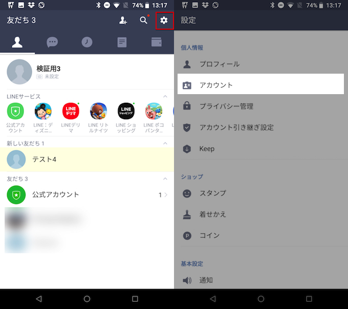 从“好友”选项卡右上角的“设置”菜单转到“帐户”。