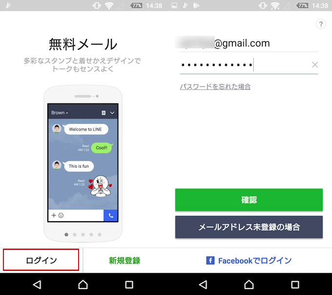 启动 LINE,然后从“登录”输入您想要转移的 LINE 帐户的电子邮件地址和密码。