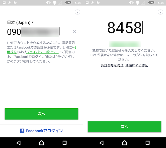 接下来,将出现电话号码注册屏幕,因此输入通过短信收到的验证号码。