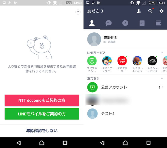 最后,在执行常规初始设置(例如验证年龄和授予联系人访问权限)后,将显示 LINE 顶部屏幕。