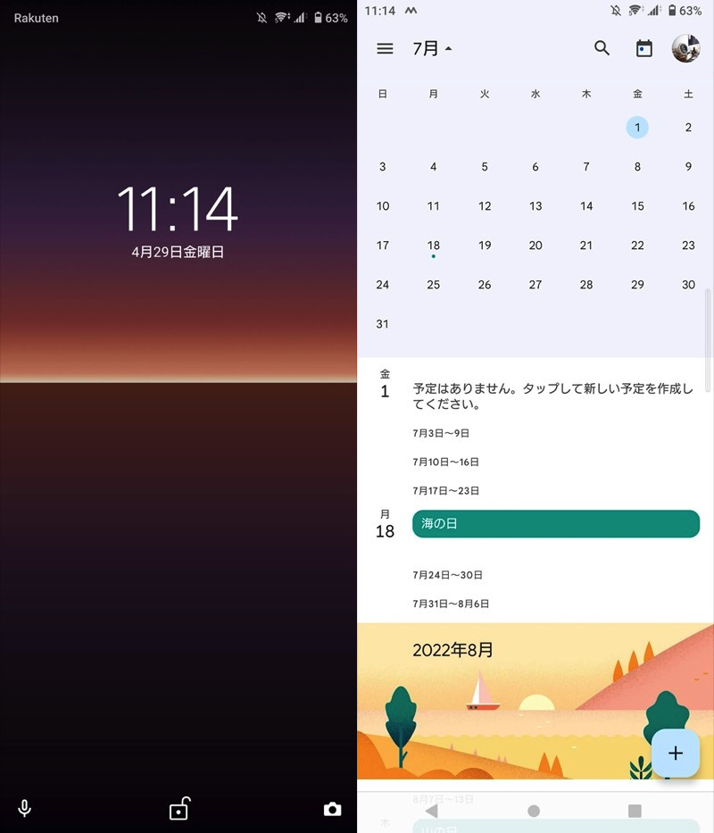 例如,当您解锁锁定屏幕(左)时,日历将自动打开(右)。