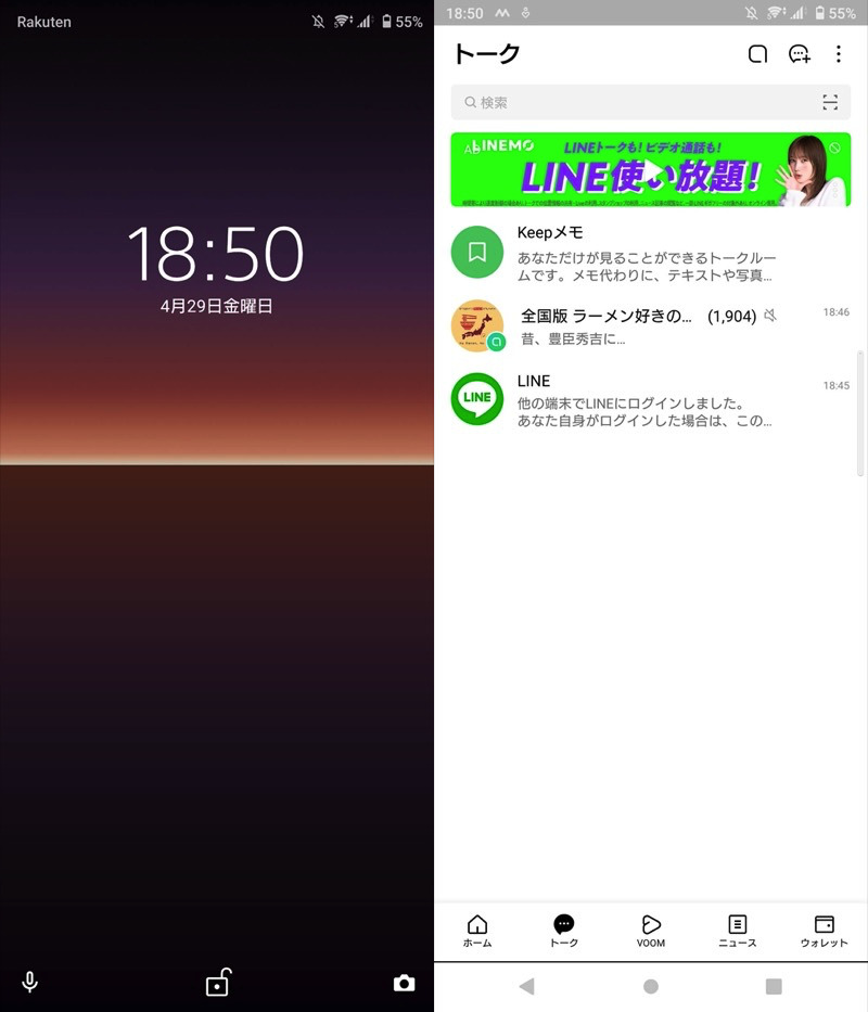例如,当您重新启动智能手机(左)时,LINE 将自动打开(右)。