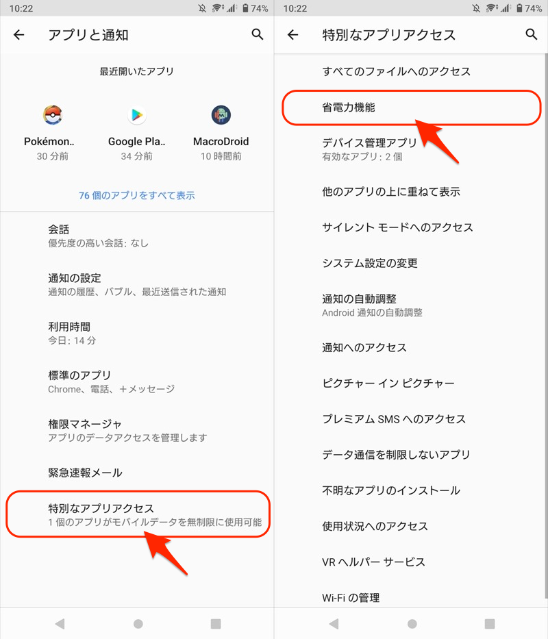从设置应用程序和通知→特殊应用程序访问→省电功能并继续,