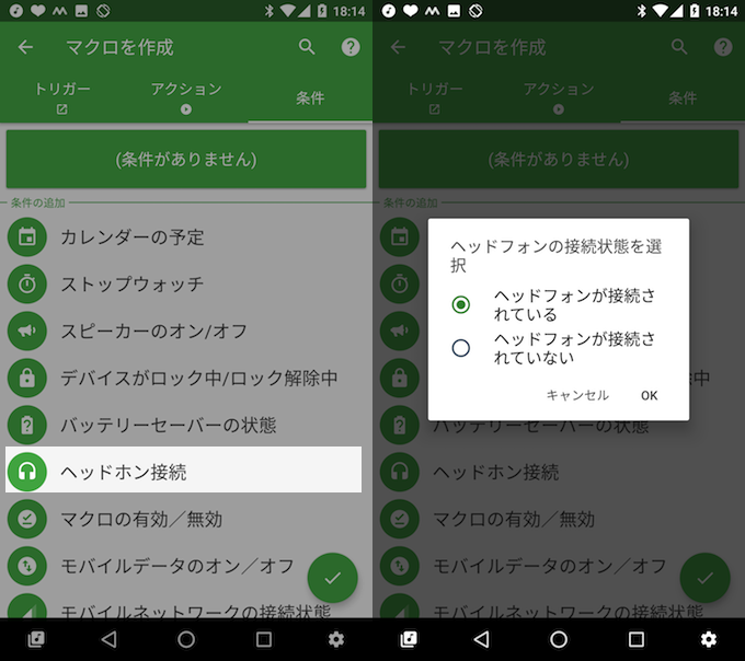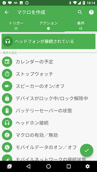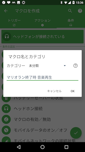例如,如果您想设置“仅在连接耳机时完成《超级马里奥酷跑》时播放 Google Play 音乐”,请从候选条件列表中选择“完成《超级马里奥酷跑》时播放音乐”。耳机连接”并检查“耳机已连接”。
