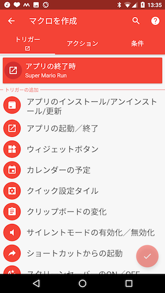 “当应用程序关闭时:超级马里奥酷跑”的触发设置现已完成。