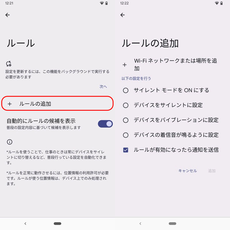 例如,您可以设置“在办公室附近时打开静音模式”或“检测到家庭 Wi-Fi 时取消静音模式”等内容。