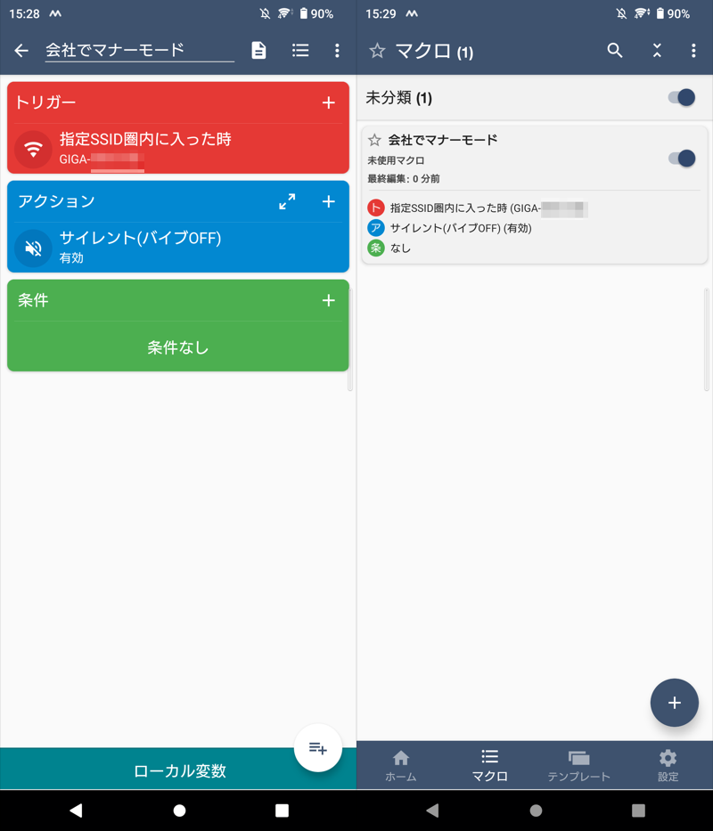 如果您使用MacroDroid,则可以检测Wi-Fi连接或访问某个位置并自动切换到静音模式。