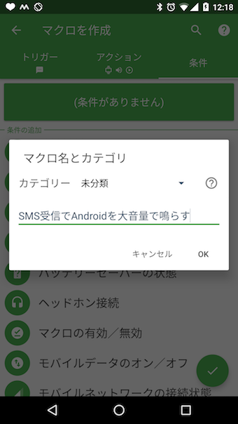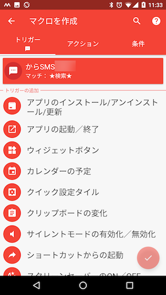 从触发候选列表中接收短信”,“MacroDroid”应用程序将请求访问短信和联系人的权限,因此请进行设置(仅在第一次时设置)。