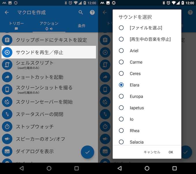 第三,从候选操作列表中选择“播放/停止声音”并检查可以在 Android 设备上设置的铃声。